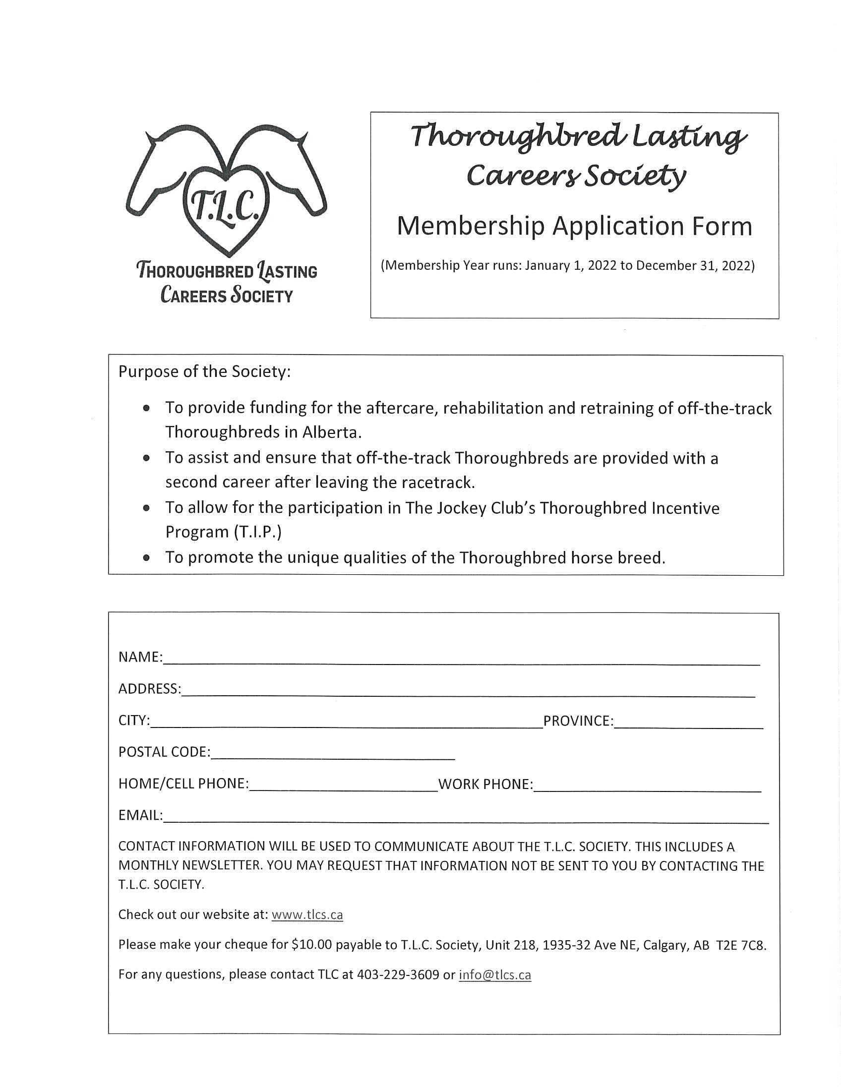 Cheques for membership should be made out to CTHS Alberta and forwarded to T.L.C.S. care of the CTHS Alberta Division.